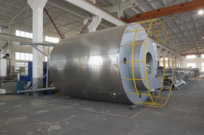 1、 塔徑塔高做了相應(yīng)的調(diào)整,既保證物料干燥之前接觸不到塔壁,又保證物料在熱風(fēng)中的停留時(shí)間;塔壁設(shè)有夾套冷風(fēng)冷卻裝置,確保物料吸附在塔壁上因局部溫度過高而產(chǎn)生軟化、熔融甚至焦化現(xiàn)象;錐角增大,錐體上安裝空氣震擊器,用壓縮空氣脈沖式地震擊筒體,把吸附在筒體上的粉料順暢地?fù)袈湎聛恚?br />