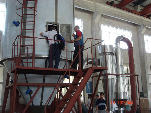 中藥浸膏是由植物根莖葉提取而成,特別是醇提工藝,它含糖份較高,在高溫下易軟化熔融,普通的離心噴霧已無法滿足干燥,針對(duì)這種情況我公司組織了一批精干的技術(shù)力量,總結(jié)出幾年來本廠設(shè)計(jì)制造噴霧干燥機(jī)的成功經(jīng)驗(yàn),收集了國內(nèi)外同行業(yè)同類型產(chǎn)品的優(yōu)點(diǎn),經(jīng)過精密、反復(fù)的工藝計(jì)算和無數(shù)次的實(shí)驗(yàn),開發(fā)出了中藥專用噴霧干燥機(jī)組,并推廣到了一些知名藥廠使用。